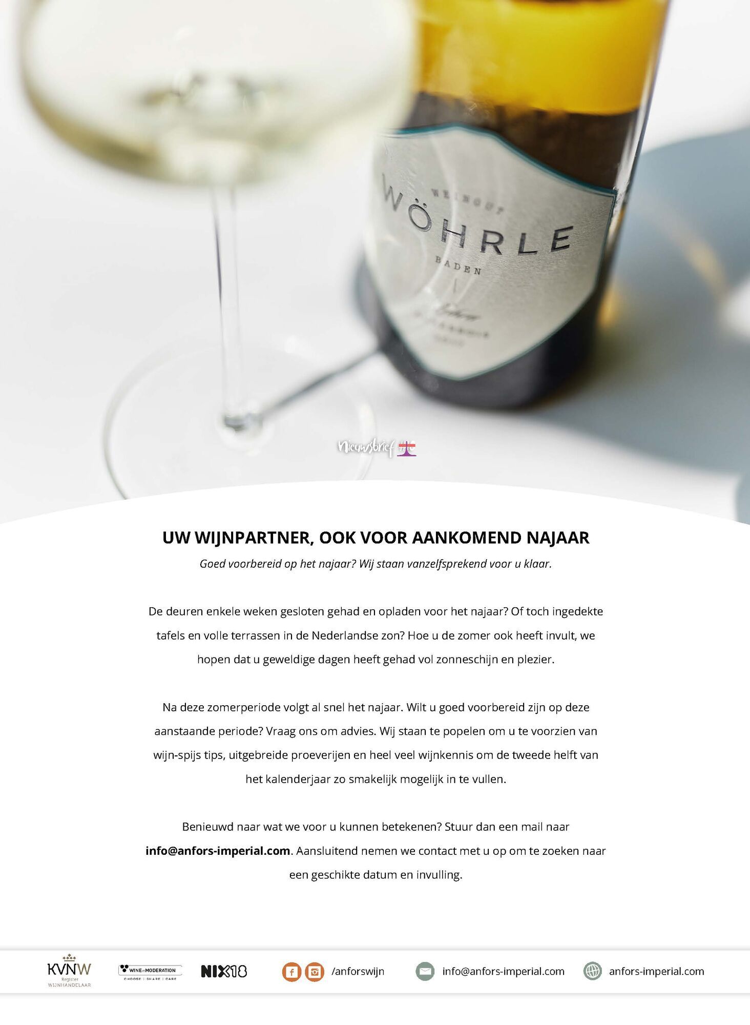 Anfors Imperial, importeur van Europese kwaliteitswijnen, is trots om de exclusieve wijnpartner te zijn van JRE. Wij zijn úw one-stop-shop voor zowel high-end wijnen als ook schenkwijnen, met een zorgvuldig geselecteerd assortiment van ruim 850 Europese wijnen, die perfect aansluiten bij de top van de gastronomie. Daarnaast bieden we alle toebehoren die de wijnbeleving compleet maakt. Bekijk hieronder onze meest recente nieuwsberichten en lees waar u ons kan ontmoeten op locatie.
